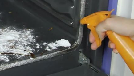 Saupoudrez les taches de votre four avec du bicarbonate de soude, puis vaporisez la solution.