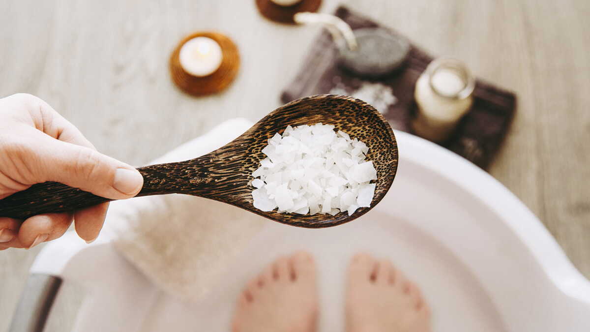 Un bain de pieds relaxant au sel